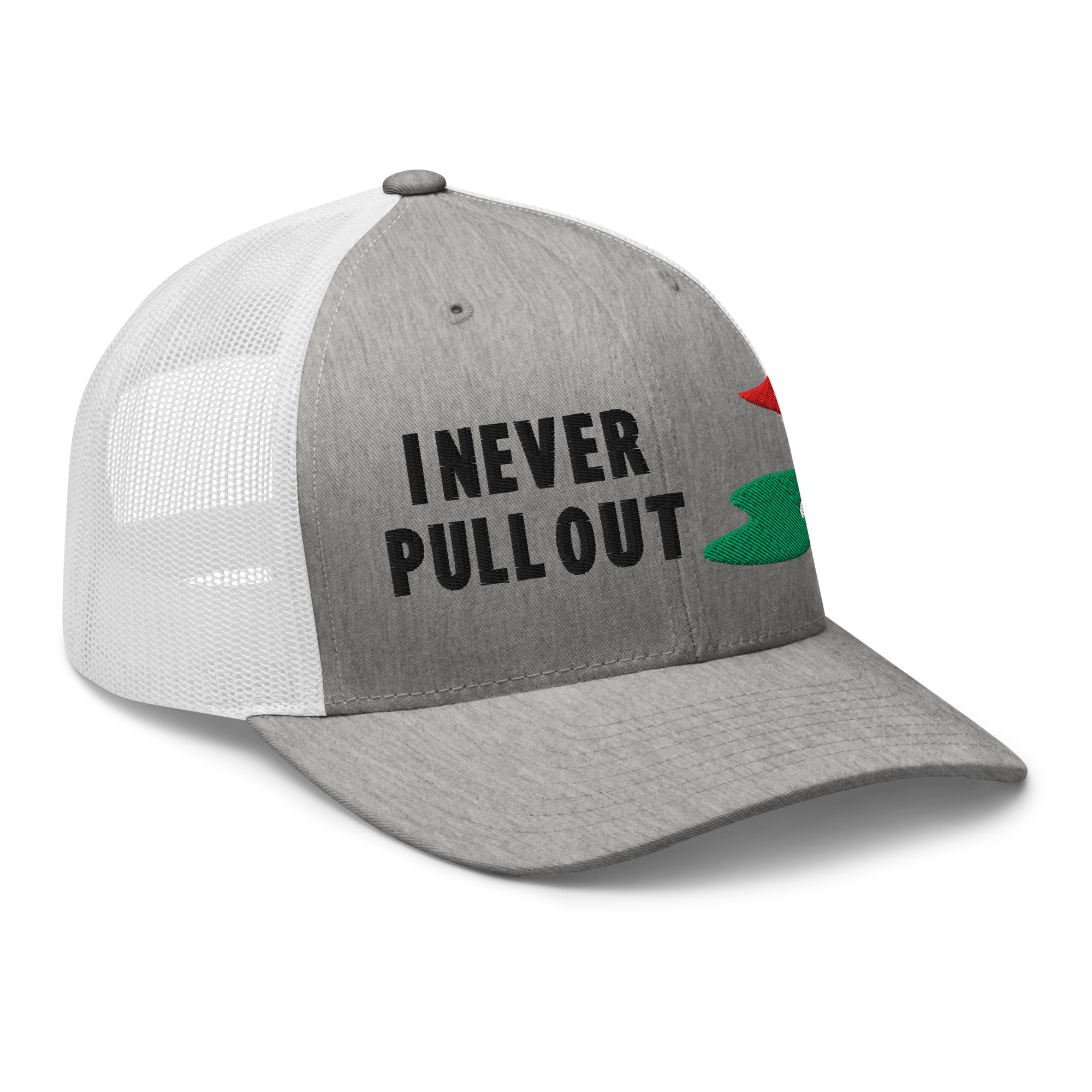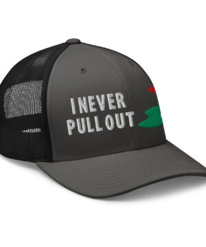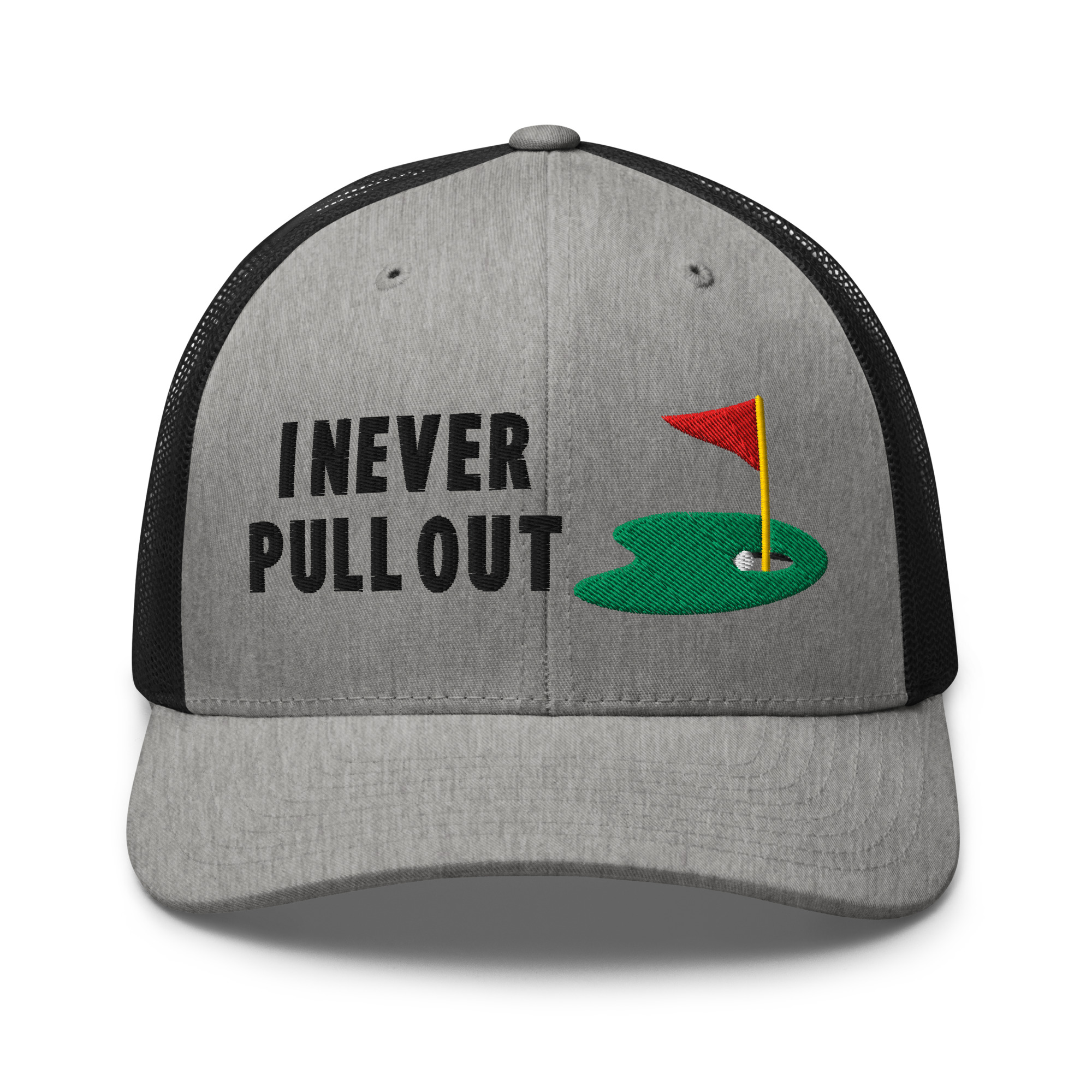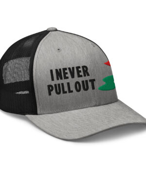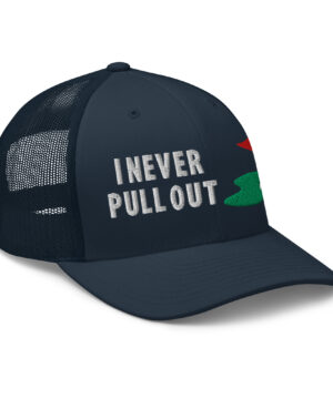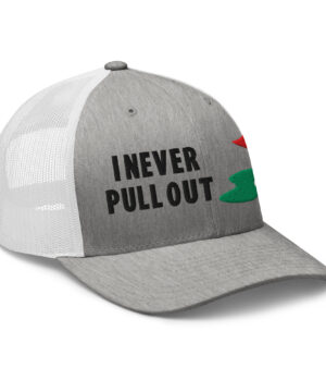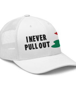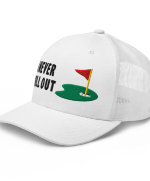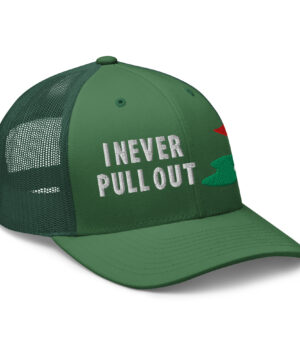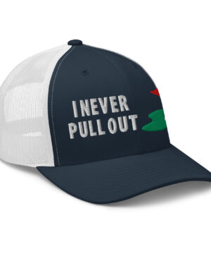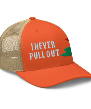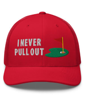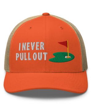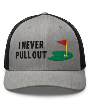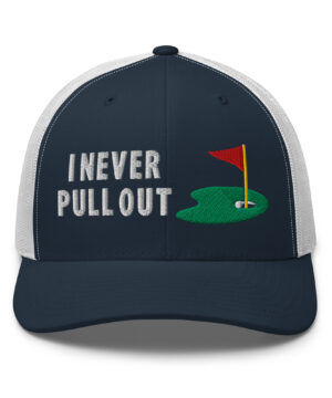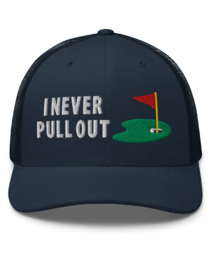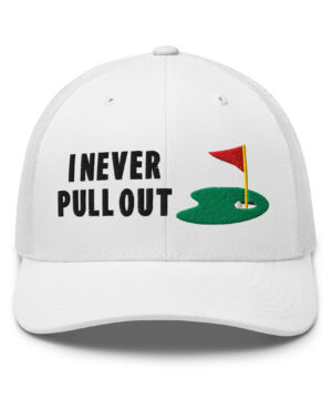 Make a bold statement on the course with the I Never Pull Out Golf Trucker Hat. It’s more than just a hat—it’s a conversation starter.