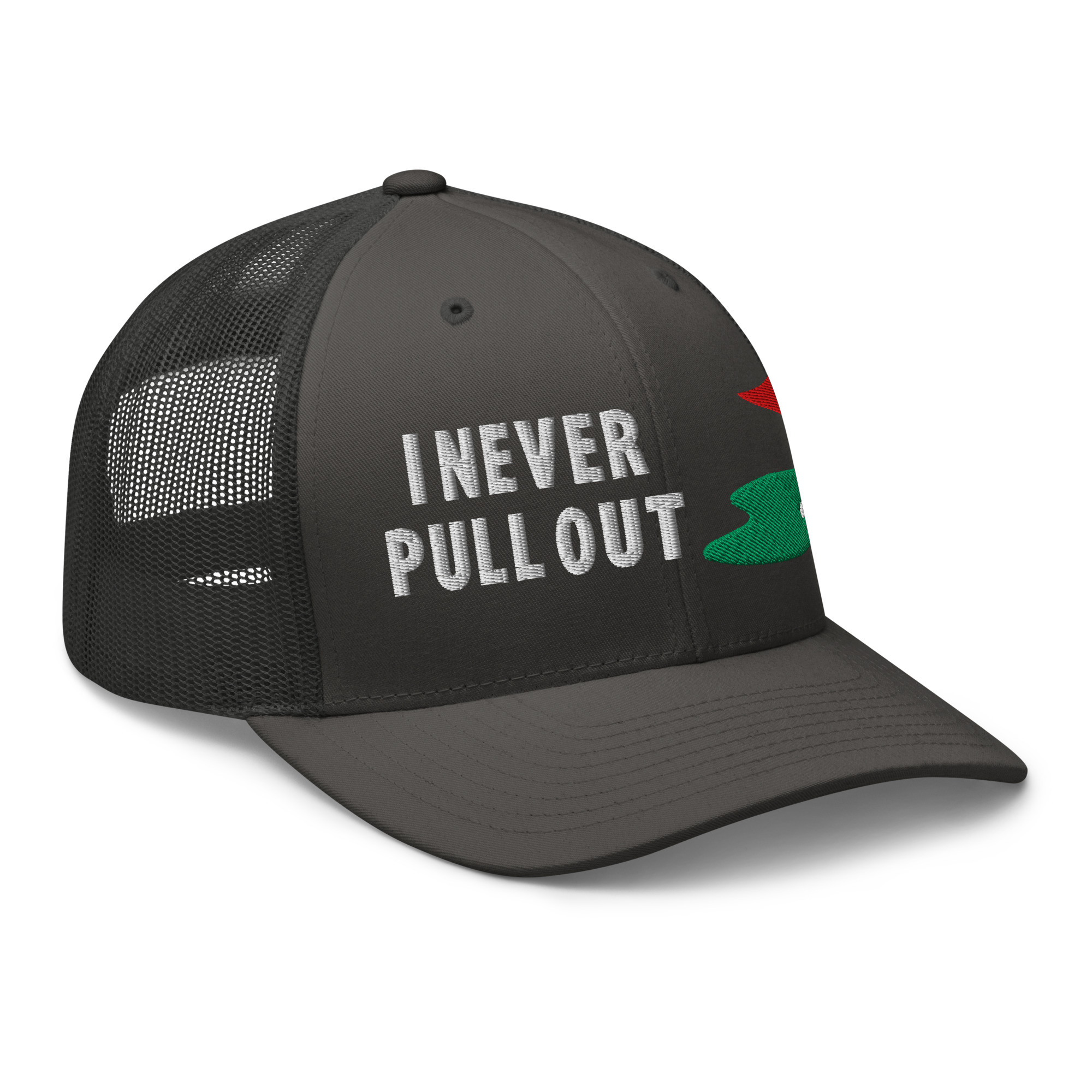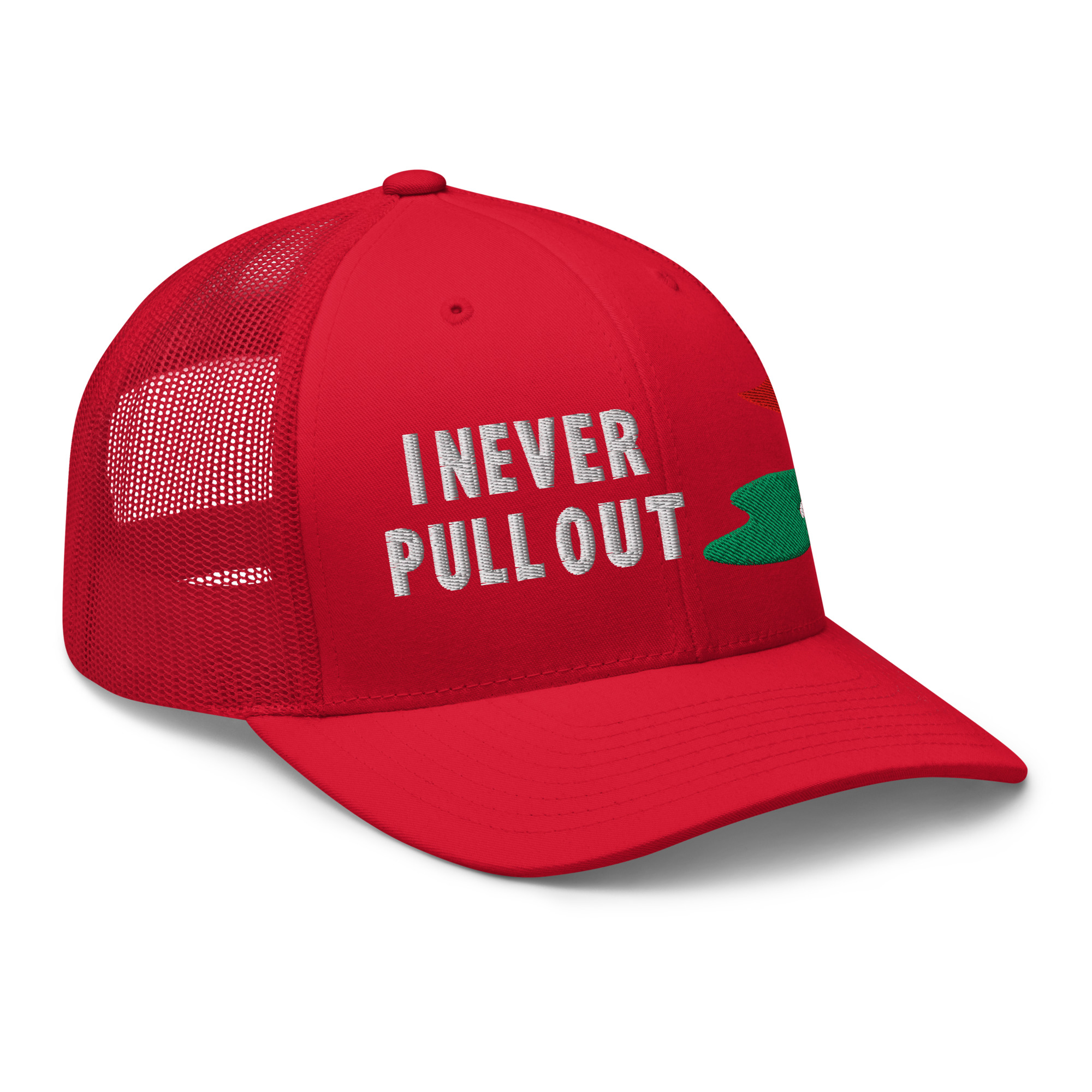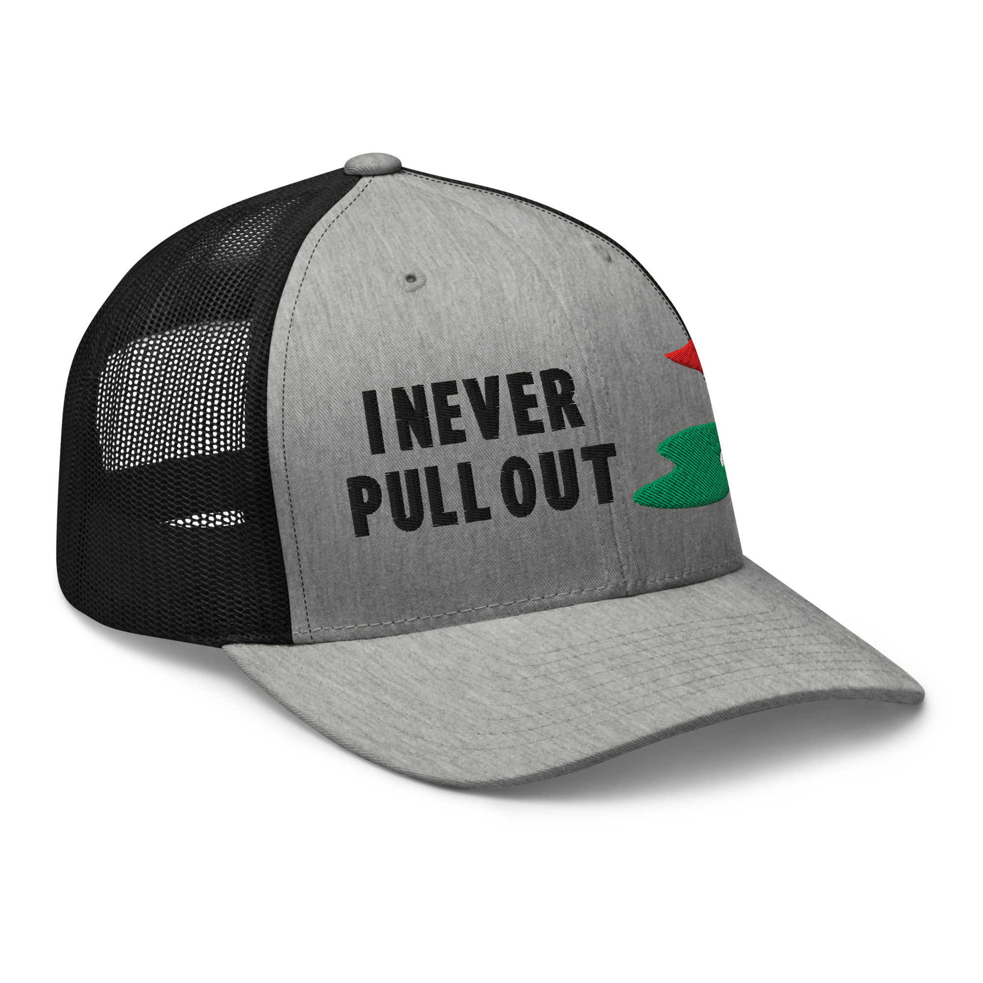 Make a bold statement on the course with the I Never Pull Out Golf Trucker Hat. It’s more than just a hat—it’s a conversation starter.