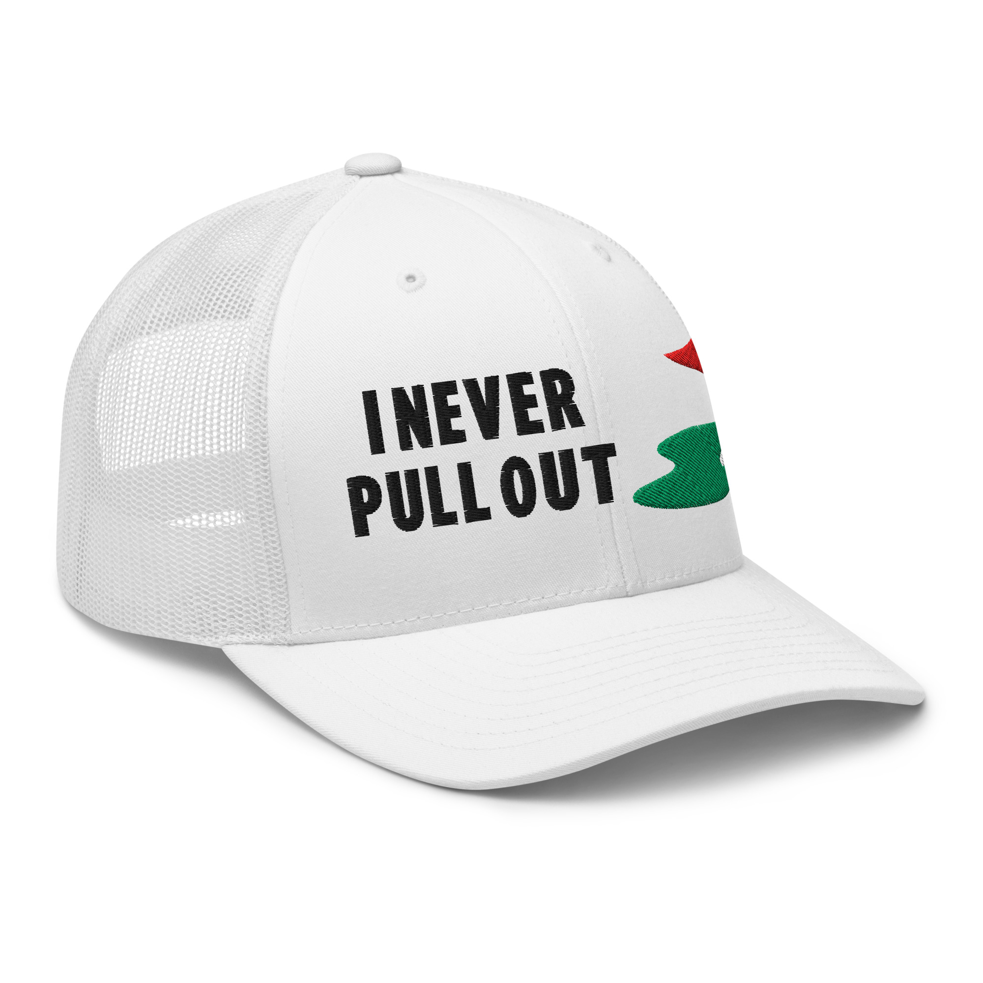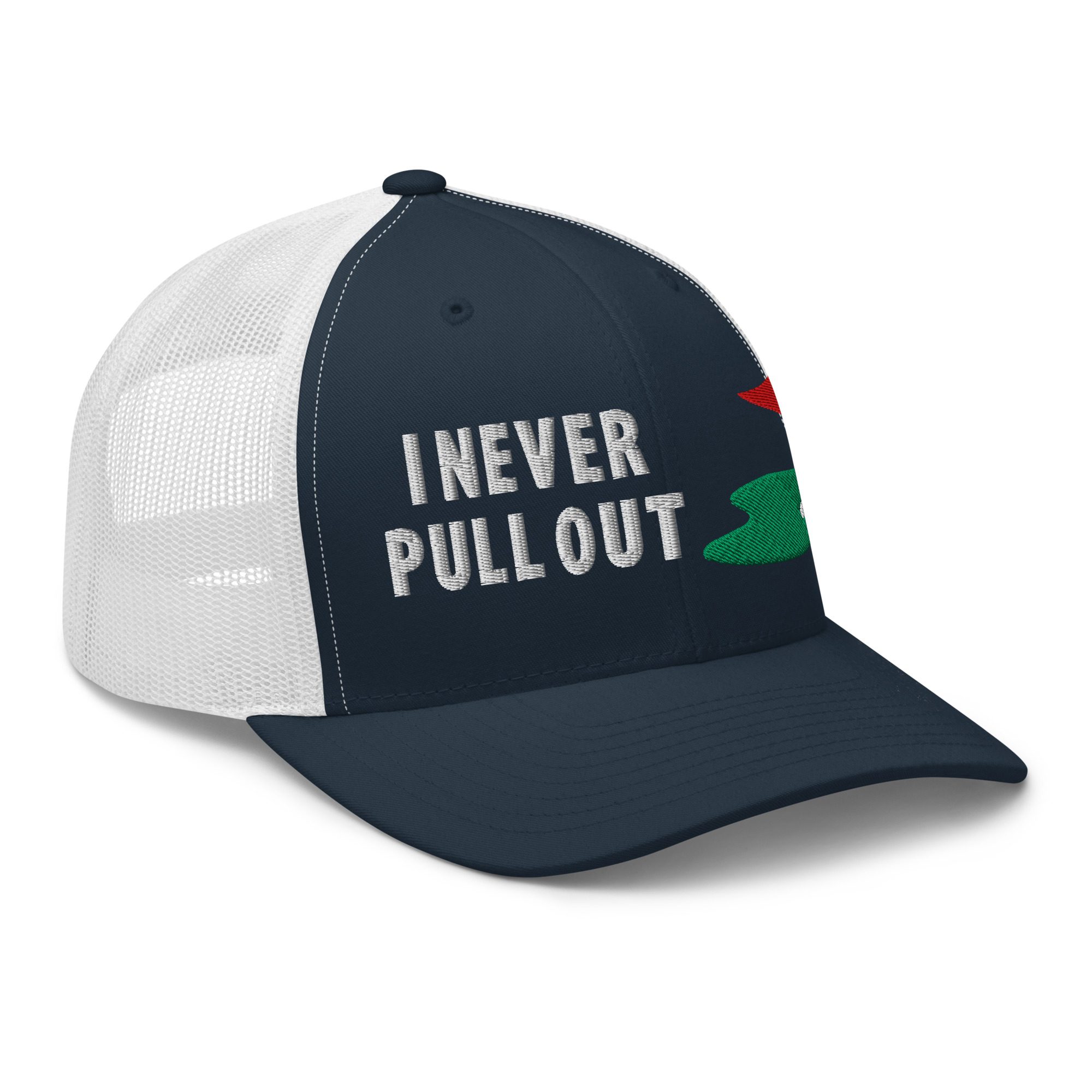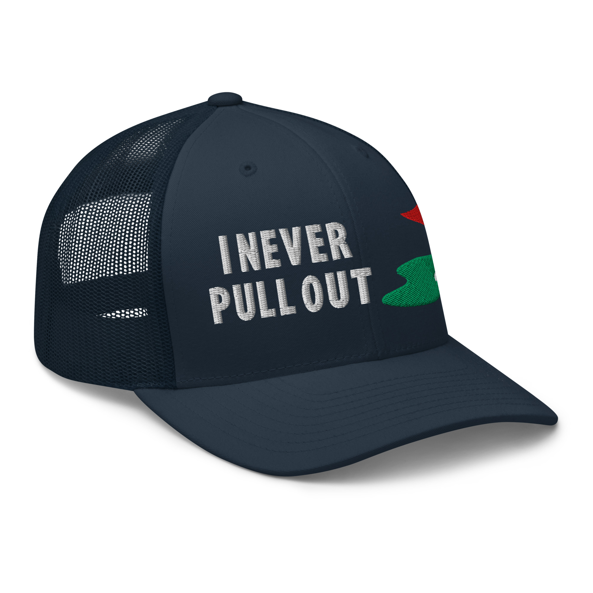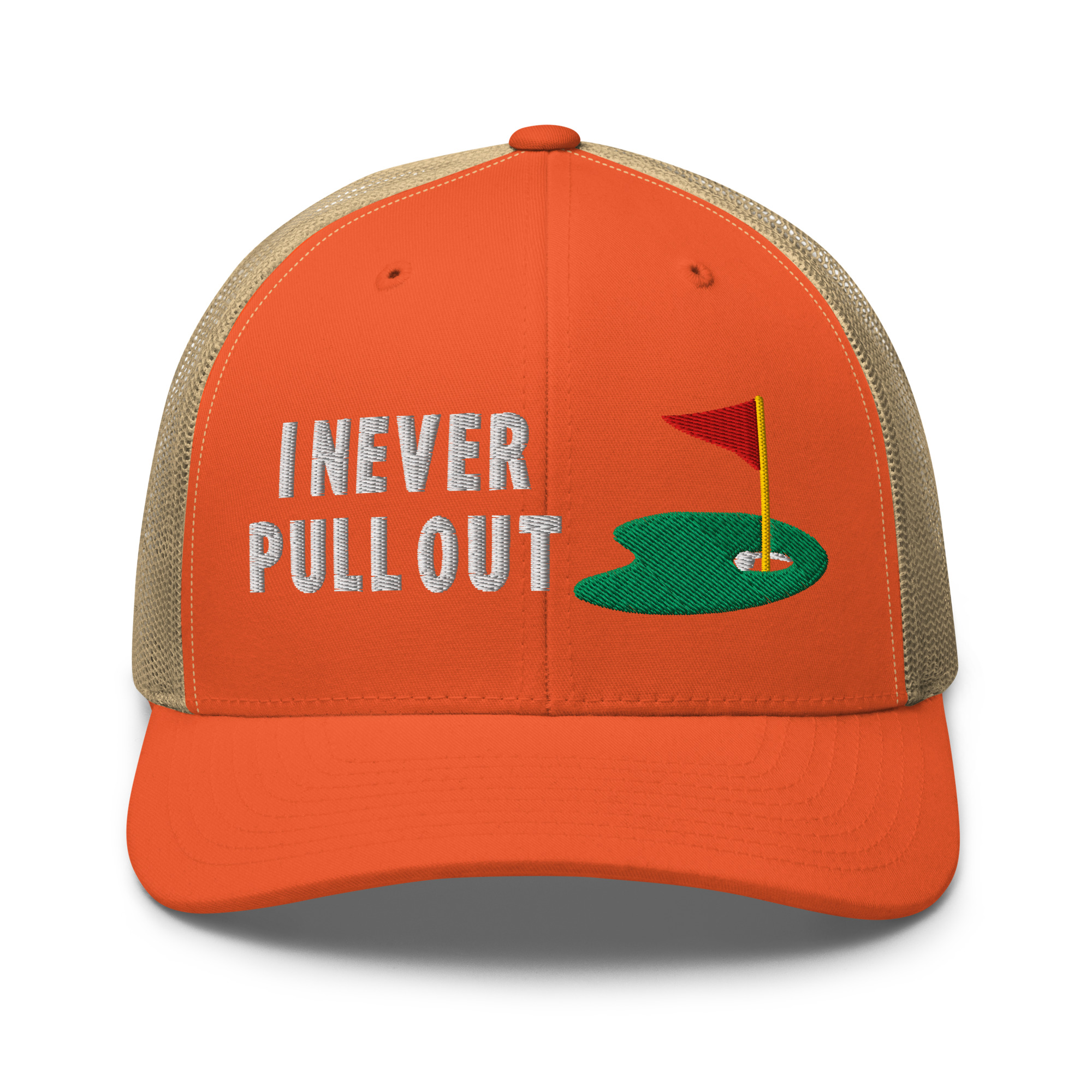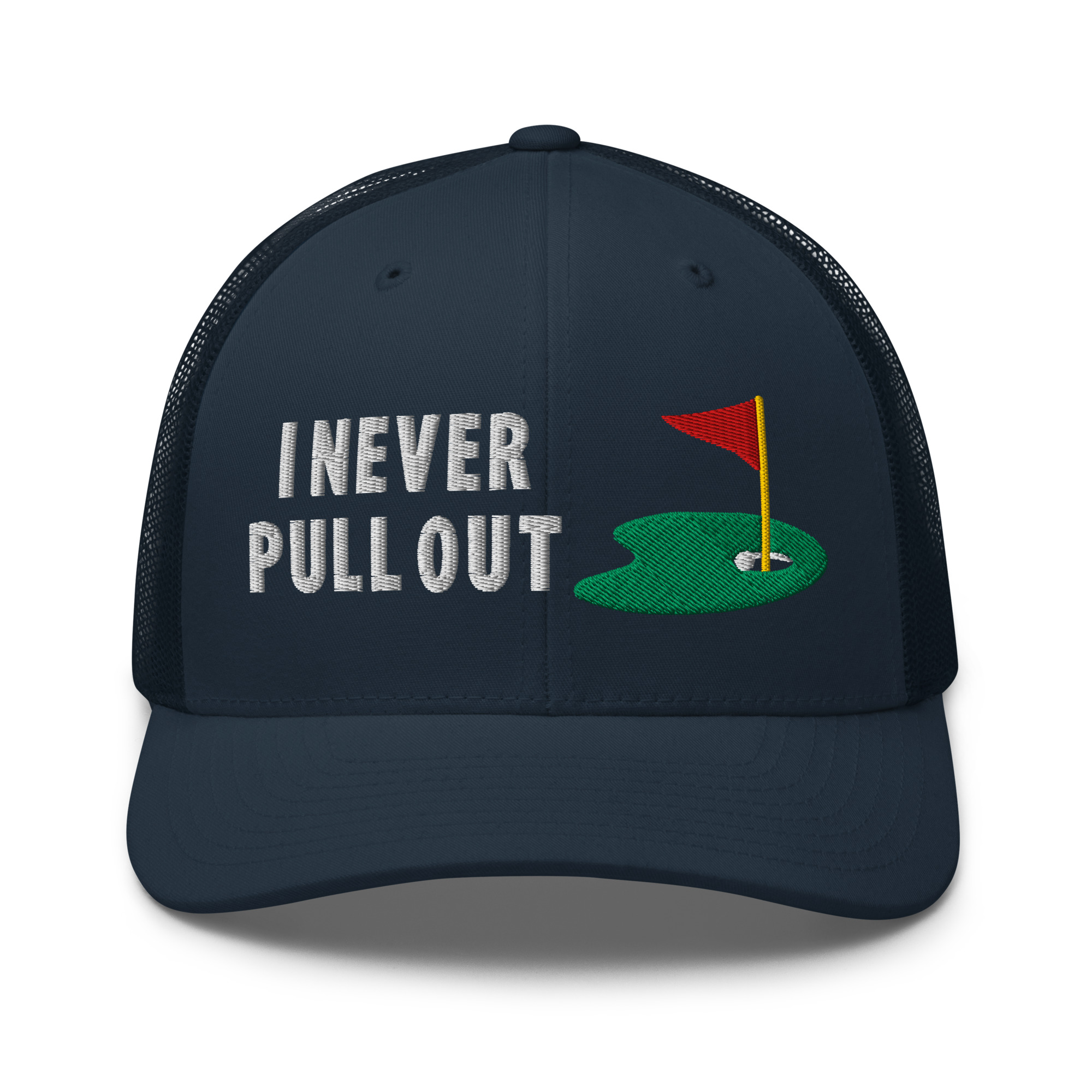 Step up your golf game with the I Never Pull Out Golf Trucker Hat. Whether you’re a golfer who loves to have fun or a fan of the sport with a great sense of humor, this hat will have you standing out on and off the course. Perfect for adding a bit of personality to your golf gear, this hat combines comfort, durability, and a playful twist.