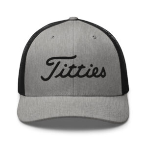 The Titties Trucker Hat combines 26% cotton and 74% polyester for soft durability. The mesh back improves airflow, keeping you cool on warm days or long rounds.